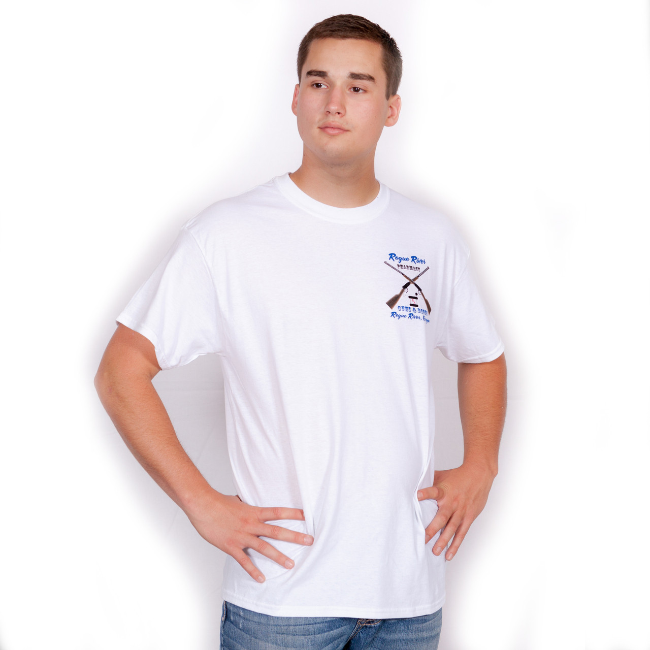 100% cotton preshrunk jersey or 90%/10% cotton/poly blend